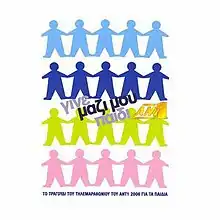 "Gine Mazi Mou Paidi" is a song written by Thanos Papanikolaou in 2006 specifically to raise money for a fundraiser οrganized by ANT1 TV. Many popular presenters, actors, singers and others from the radio station "Rythmos 94.9" participated to the fundraiser to help raise money for the poor and disabled children all over the Greece.[1]