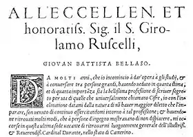 La cifra del Sig. Giovan Battista Belaso ... Venetia 1553. Foreword.