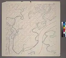 1905 Map showing Givans Creek. Street grid does not match modern layout.