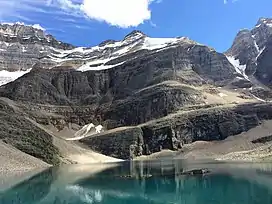 Glacier Peak (centered) with Mount Lefroy in upper left and Ringrose Peak in upper right as seen from Lake Oesa