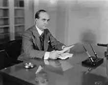 Frank started the brief Experimental College and expanded the agriculture program.[1] During his time as president, Frank also helped to found the Citizens National Committee for Sacco and Vanzetti, a pressure group that campaigned for a stay of execution for Sacco and Vanzetti.[5] Frank did not enjoy faculty support despite his support of academic freedom and tenure, and his public criticism of Franklin D. Roosevelt put him at odds with the La Follettes in public office.[1] The Board of Regents, mostly appointed by La Follette, requested Frank's resignation in March 1936.[1] Frank declined to resign and the Board held public hearings on his presidential competency before narrowly voting to remove him from office on January 7, 1937.[1]