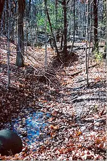 Glenview Creek in Harms Woods, flowing west towards the Chicago River via a shallow, winding ravine.