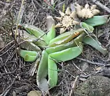 It is probably the most widespread species of Glottiphyllum, after Glottiphyllum longum, and one of the most commonly found in cultivation. Though not as common as G.longum, it is far more variable in its form.[2][3]