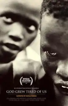God Grew Tired of Us is a 2006 American documentary film about three of the "Lost Boys of Sudan", a group of some 25,000 young men who have fled the wars in Sudan since the 1980s, and their experiences as they move to the United States. The film was written and directed by Christopher Dillon Quinn.