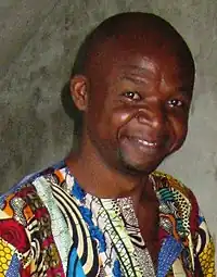 Goddy Leye (real name Godfried Kadjo[2]) was born 24 November 1965 in Mbouda, Cameroon. He obtained his diploma at a bilingual high school in 1989 and studied African literature and philology at the University of Yaoundé between 1986 and 1991. In 1990 he obtain his master's in African literature. His artistic training started in 1987 with the artist and art historian Pascal Kenfack in Yaoundé until 1992. He continued his training in 1994 at the National Art Institute in Bamako, in 1997 at the ZKM Karlsruhe Centre for Art and Media in Germany, in 1999 at 18th Street Arts Complex in Santa Monica, California and between 2002 and 2002 at the Rijksakademie van Beeldende Kunsten in Amsterdam. In the Netherlands he co-funds and he becomes member of the Rijksakademie International Network (RAIN), a network of artists who support contemporary cultural practices in their countries of origin.[3] Specifically for his interest in supporting art practices, Leye moved back to Douala in 2002 to create the art centre ArtBakery in Bonendale, devoted specifically to facilitating artistic training and exchanges among artists and to support multimedia, installations, video and digital art.[4]