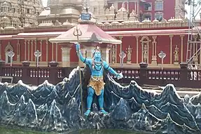The view of the temple pond showing the statue of Shiva