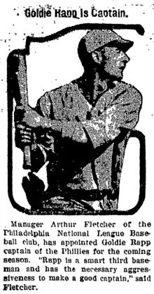 Joseph Aloysius "Goldie" Rapp (February 6, 1892 - July 1, 1966) was an American professional baseball third baseman. He played in Major League Baseball (MLB) for the New York Giants and Philadelphia Phillies from 1921–1923.