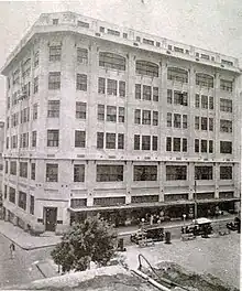 In 1912, the firm became González Padín y Co., Incorporated, and then Mr. Anselmo González Padin withdrew from the company, remaining, however, on the Island with his relatives. Don Jose González Padin then assumed the primary presidency of the firm. As the store had grown so much, it was necessary to make an extension to the premises, and the store extended to the Matienzo passage, to the three-story building next to the one it occupied. The first elevator for commercial use inside a store in San Juan was installed there. A soda fountain was also installed, the first in an establishment of its kind. The company would also later on open stores in Mayagüez and Ponce.[4] In 1923, at a cost of $750,000, González Padín would move to a new building which was built in the Main Plaza of San Juan, and would open their flagship store which became the "First Commercial Skyscraper" in Puerto Rico. San Juan finally had a large department store, facing the Plaza de Armas. The company continued its pioneering work in many details that were later on commonly used by businesses on the island. It was the first store to offer the home delivery service, and to have "a price for everyone", as the fixed price system that later on governed commerce on the island.[5][6]