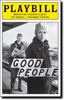 The show began previews on Broadway at the Samuel J. Friedman Theatre on February 8, 2011, and opened on March 3.[5][6][7] Good People was directed by Daniel J. Sullivan and starred Frances McDormand as Margie and Tate Donovan as Mike.[5][6] Other cast members were Becky Ann Baker as Jean, Patrick Carroll as Stevie, Estelle Parsons as Dottie, and Renée Elise Goldsberry as Kate.[6][8][9] The creative team included sets by John Lee Beatty, costumes by David Zinn, and lighting by Pat Collins.[10][8] The limited engagement run concluded on May 29, 2011, after 101 regular performances and 27 previews.[1][11]