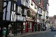 The street was first recorded in about 1180. In the Mediaeval period, the street lay in the parish of Holy Trinity Church, although since 1316 the church has been hidden from the street, behind Lady Row. The precinct of York Minster lay immediately north of the street, and until the early 19th-century, was entered through a gateway. Part of this may survive in the rebuilt structure at the entrance to College Street. The original site of the York Dominican Friary may have been on the street, although it moved to Toft Green in 1227.[1][2] By this time, the street contained some large, stone, houses, associated with wealthy merchants.[3]