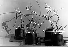 Kinetico incorporated in 1973. Kinetic art became the basis of Kinetico's product lines from then on. The products were almost always powered by AC electric synchronous timing motors.[9] Materials used for the sculptures were metals and rosin, brazed, soldered or glued together. Bradt designed and built all necessary jigs for parts and assembly, and developed techniques for finishing, such as polishing processes and lacquer finishes.[10][9]