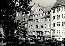 The actors Dirch Passer and Judy Gringer resided in the apartment on the second floor to the right from 1858.[36] The association had been founded in 1881.[37] Passer came from an apartment on Amagerbrogade (No. 84, first floor) while Gringer had until then lived in Bagsværd. Gringer moved to an apartment at Bianco Lunos Allé 10 (fourth floor) when the couple divorced in 1963.[38] Passer kept the apartment on Gråbrødretorv until 1968. His next home was a house at Rosbækvej 11 in Østerbro.[39] The artist and designer Bjørn Wiinblad has also lived in the building. He lived in the apartment on the third floor to the right.[40]