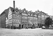 With the introduction of house numbering by street in 1859 (as opposed to the old cadastral numbers by quarter), No. 108 in Frimand's Quarter became known as Gråbrødretorv 8.[1] Yje årpåerty was at the time of the 1860 census home to a total of 16 people.[9] The second floor was occupied by two households. One of them consisted of the master bookbinder Carl Wendt Nielsen and his sister Hansine Nicoline Nielsen. The other consisted of the actress Helene Hoff and her lodger Christine Wilhelmine Christensen. Johan Dunweber. a master weaver, resided on the first floor with his wife Christiane Dunweber and his niece Botilde Jacobine Rosengaard. Ludvig Ferdinand Benthien, an innkeeper, resided on the ground floor with his wife Henrige Emilie Benthien, their two daughters (aged 2 and 4) and a maid. Christen Wandze, a grocer (høker), resided in the basement with his wife and two lodgers.