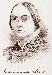 Lewis' father died when she was only three years old, leaving her mother to raise her alone.[3] Her mother had been a school teacher prior to marriage and was instrumental in developing a keen affection for science learning in Graceanna.[2] Esther Fussell Lewis made astronomy and weather observations as well as plant flowering times.[4] She also serving as a role model in social activism by housing fugitive slaves as part of the Underground Railroad to freedom in Canada.[3] Following her mother's death, Lewis made her own home available for this purpose, secretly providing overnight accommodation for as many as 11 runaways slaves at one time.[1]