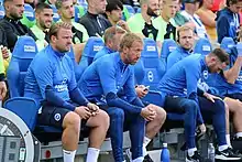 On 8 September 2022, Brighton announced that Potter and five members of his backroom staff would depart the club for Chelsea.[66] Chelsea reportedly paid Brighton around £16m for Potter[67][68] and an additional £5.5m to £6.5m in compensation for his backroom staff.[69] He was succeeded at Brighton by Roberto De Zerbi.[70]