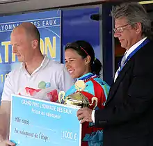 1. «Le Grand Prix F.F.TRI. – Lyonnaise des Eaux est l’événement de la saison de triathlon puisqu’il rassemble sur son circuit les meilleurs athlètes français et étrangers engagés dans les clubs de 1ère Division. Les clubs de 1ère division concourent pour obtenir le titre de Champion de France.» - see http://www.fftri.com/spip.php?rubrique109 Archived 2010-07-26 at the Wayback Machine. Retrieved 28 May 2010.