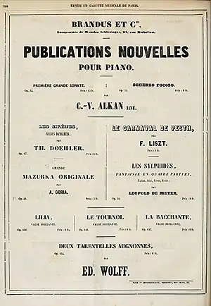 - ↑ Eddie, William A. (2007). Charles Valentin Alkan: his life and his music, p.84. Aldershot: Ashgate Publishing. ISBN 978-1-84014-260-0.