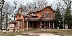The Granger House, also known as the Marion Historical Museum and the Granger House Museum, is a historic building located in Marion, Iowa, United States. This Victorian Italianate house was built around 1860 by Charles Myers. Earl Granger bought the house in 1876 and it remained in his family until 1973.[2] Granger built the carriage house in 1879, and built an addition onto the main house the following year. The two-story brick building features a 1+12-story ell, a gable roof, bracketed eaves, and arched stone lintels over the symmetrically arranged windows. The front porch is not the original. The house was listed on the National Register of Historic Places in 1976.[1]