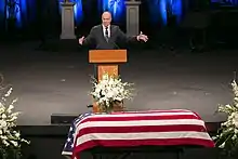 Woods delivered a eulogy at Senator McCain's funeral in 2018. Woods recounted stories of his time with McCain and wrote that their friendship was "a little bit harrowing, a little bit wild ... but a lot of fun. And the greatest honor of my life".[4]