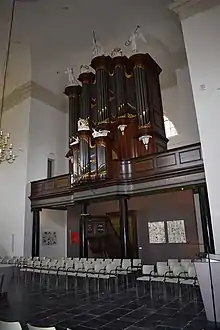 The interior was radically changed by a renovation in 1972–1973. The organ and pulpit are all that remains from the original furniture, designed by A. Goekoop when the church was built. There is also a copper baptismal font holder made by Cornelis Brem in 1718, which was brought from St. John's. The organ has been built by Bätz, and was taken into use in 1831. It was restored in 1962.[10]