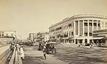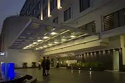 During its heyday, the hotel was known variously as the "Jewel of the East"[1] and the "Savoy of the East"[4] and was prosaically described by Kipling in his short story City of Dreadful Night.[1] It was said of the hotel in 1883 that "a man could walk in at one end, buy a complete outfit, a wedding present, or seeds for the garden, have an excellent meal, a burra peg (double) and if the barmaid was agreeable, walk out at the other end engaged to be married".[6] The hotel has housed many famous personalities including Nikita Khrushchev and Nikolai Bulganin,[4] Elizabeth II,[1] Mark Twain,[4] Dave Brubeck[7] and possibly Ho Chi Minh.[1] The management of the hotel was taken over by the state government in the 1970s and continued operations for over 30 years.[1] The state sold it to the private group The LaLiT Hotels, Palaces and Resorts in 2005.[4] Until its closure for restoration in 2005, the hotel was the longest continuously operating hotel in Asia.[8]