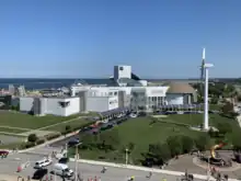 The Great Lakes Science Center is located between FirstEnergy Stadium and the Rock and Roll Hall of Fame at North Coast Harbor on the shore of Lake Erie. Discounted parking is available for guests in the attached 500-car garage.[3]
