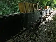 The railway's freight wagons were originally constructed locally, and took the form of high-sided four-wheeled open ore wagons. A full train of these wagons was discovered underground in the mid-1970s.