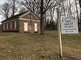 Built in 1856, the Greek Revival one-room schoolhouse served the students of the Great Plain community until the 1940s. In 1954 the City of Danbury transferred the building to the Great Plain District Association, a neighborhood organization with plans to convert it into a community center. In February 1955, 75 residents from the neighborhood joined in a housewarming for its opening.[8] The Old Great Plain School is one of only three one-room schoolhouses still standing in Danbury.[6]