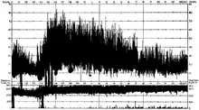 The event was notable for the duration of the destructive winds. As shown on the anemograph trace to the right, wind speeds rose very rapidly from relatively calm to a peak of 97 mph (156 km/h) in Sheffield in the early hours of 16 February, and only slowly decreased throughout the course of the day as the low moved out into the North Sea. The return period for such an intense storm hitting Sheffield is estimated at once every 150 years.[4]