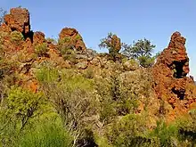The majority of the Great Western Woodlands sits atop the stable geological formation known as the Yilgarn Craton that was formed between 2,400 and 3,700 million years ago.[12] This formation contains some of the oldest mineral deposits ever recorded on the Earth's surface.[13] The region also has a series of geological intrusions running parallel to the Earth's surface, known as the greenstone belts. These formations house large quantities of gold and nickel,[14] and also provide very rich and mineralised soils, which have led in part to the evolution of locally distinctive flora.[1]
