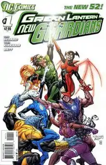 ![]() Cover for Green Lantern: New Guardians #1 (November 2011), art by Tyler Kirkham, Batt and Rod Reis. | |