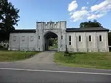 The land on which Green Mount Cemetery is located was purchased from Isaiah Silver in 1854.[2] Of the $2,210 purchase price (about $70,000 in 2022), $1,000 was donated in accordance with the will of Calvin J. Keith, a Montpelier lawyer who died in 1853, and $1,210 came from the town government.[1] In 1905, a bequest from John E. Hubbard enabled construction of the chapel-vault building.[1] The vault portion can hold up to 60 entombments, while the chapel can accommodate 60 people for funeral services.[1]