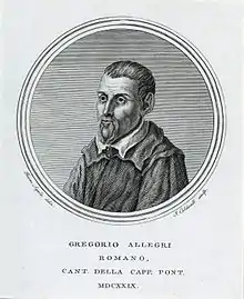 Gregorio Allegri (c. 1582 – 17 February 1652)[1][2] was a Catholic priest and Italian composer of the Roman School and brother of Domenico Allegri; he was also a singer. He was born[3] and died in Rome. He is chiefly known for his Miserere for two choirs.