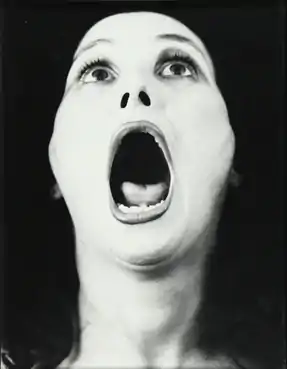 At the beginning of the 1970s she started creating the series of paintings, Metamorphosis and her work was noted by the Brazilian gallerist, Franco Terranova. In 1975 he participated in the Bienal Internacional de Arte de São Paulo. In 1976 he showed her works in the Galeria de Arte Global, in São Paulo.[9] In 1979 she had several shows in Germany (Karlsruhe) and in Italy (Galleria Diagramma, Milan; Palazzo dei Diamanti, Ferrara) and also in Paris, Centre Georges Pompidou, where she performed the Evocative Recollections. In 1980 she held the exhibition Evocative Recollections & Transformations at the Museu de Arte Contemporânea (MAC/São Paulo). In 1983 she created a series of paintings with a book, dedicated to the Brazilian culture, Self-Portrait of Brazil,[10] a publication containing a series of paintings by the artist and texts about important personalities from the country that was exhibited at the Museu de Arte de São Paulo (MASP) and in 2011 participated in the exhibition Arte como Registro, Registro como Arte, na Pinacoteca do Estado de São Paulo.