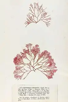 | « Griffithsia corallina » = Griffithsia corallinoides - Illustration in Alguier des frères Crouan, Université de Bourgogne, 1852 | |