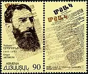 Grigor Artsruni (also spelled as Krikor Ardzruni) (Armenian: Գրիգոր Արծրունի; 27 February 1845 – 19 December 1892) was an Armenian journalist, critic, writer and public activist, Doctor of Political Economy and Philosophy (degreed by Heidelberg University in 1869). In 1872, he began publishing the Mshak magazine, being its editor and manager until his death.