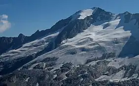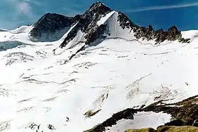 The Große Möseler (Italian: Grande Mèsule), also called the Mösele, is a mountain, 3,480 m (AA), and thus the second highest peak in the Zillertal Alps after the Hochfeiler (3,509 m). It lies on the Zillertal main ridge which forms the border here between the Austrian state of Tyrol and the Italian province of South Tyrol. Its great size makes it the dominant mountain in the area. Seen from the northwest it appears like a firn-covered dome; but from the northeast as a regularly shaped cone of rock. Prominent arêtes radiate from the peak to the northwest, east and south. The mountain is easily ascended from the Furtschaglhaus and is often visited as a result. It was first climbed on 16 June 1865 by G. H. Fox, Douglas William Freshfield and Francis Fox Tuckett with mountain guides, François Devouassoud from Chamonix and Peter Michel from Grindelwald, as well as two unknown bearers.[1]