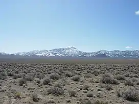 The Groom Range is a mountain range in Lincoln County, Nevada.[1] The range was renamed from Naquinta Mountains or Tequima Range in 1864, after Bob Groom, who discovered minerals in the range.[2] It is located within the Nevada Test and Training Range, north of Groom Lake. The highest point in the Groom Range is 9,249 feet. The Groom Range is situated 26.6 miles north of the dry Groom Lake.