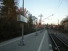 Großhesselohe Isartalbahn station (German: Großhesselohe Isartalbahnhof) is a station on the Isar Valley Railway from Munich to Bichl in the German state of Bavaria. Since 1981, it has been a station of the Munich S-Bahn. The station is located in the municipality of Pullach, which also contains the stations of Pullach and Höllriegelskreuth. It is classified by Deutsche Bahn as a category 5 station[2] and has two platform tracks. The station building is registered as a historic building on the List of Bavarian Monuments.[4]