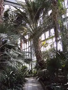 The garden was created by industrialist and plant collector Hermann Gruson, who upon his death in 1895 bequeathed his extensive succulent collection and 100,000 Marks to the city of Magdeburg. The greenhouses opened to the public in 1896, with a Victoria house added in 1910. The garden suffered severe damage in World War II, with virtually all glass broken, and the palm house completely destroyed. By the summer of 1945, however, its cactus and succulent house reopened, as did the tropical house. Other houses were gradually restored, with the palm house rebuilt in 1986.