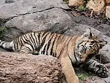 A little tiger playing at the park