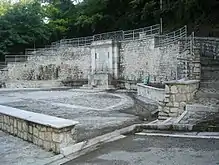 There are numerous public fountains in the area. One of the most significant is Fontana Beveri, which is located at the southwestern foot of the mountain Mundi. It is constructed out of large slabs of white, hard-carved stone.[57]