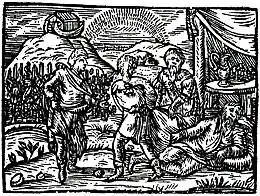 Bellman chose to first publish the song anonymously on broadsheets throughout Sweden.[7] In 1768 the Lund chapter reacted by sending a letter to the priests of the diocese, attempting to collect all prints and transcripts of "Gubben Noach" and other biblical travesties, in order to have them destroyed.[12][13] Bellman's biographer Lars Lönnroth comments that this showed that the church had failed to understand that ordinary people saw the song as innocent fun.[7] Far from suppressing the song, the church's attention increased its fame, and it quickly became Bellman's most popular work to date.[7] Lönnroth notes that songs praising Noah had been current among the bacchanalian poets of Germany and France from Renaissance times, and that Jean Le Houx's sixteenth century French poem contained phrases much like Bellman's:[7]