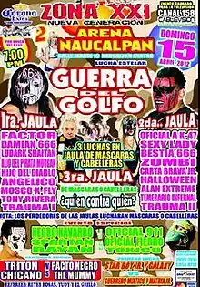 Starting as far back as at least 2000, the Mexican wrestling promotion International Wrestling Revolution Group (IWRG; Sometimes referred to as Grupo Internacional Revolución in Spanish) has held several annual events where the main event was a multi-man steel cage match where the last wrestler left in the cage would be forced to either remove their wrestling mask or have their hair shaved off under Lucha de Apuestas, or "bet match", rules. From 2005 IWRG has promoted a spring time show promoting the steel cage match concept under the name Guerra del Golfo, or "Gulf War", referring to the Gulf of Mexico, not the Gulf War in the middle east. The Gurerra del Golfo shows featured two "qualifying" steel cage matches where the loser would later be forced to face off against each other in the main event of the show, a final cage match where the loser would be forced to either unmask or have his/her hair shaved off. The use of the steel cage in three matches distinguishes the Guerra del Golfo event from other Steel cage matches held throughout the year such as the IWRG El Castillo del Terror ("The Tower of Terror"), IWRG Guerra de Sexos ("War of the Sexes") or IWRG Prison Fatal ("Deadly Prison") shows. The Guerra del Golfo shows, as well as the majority of the IWRG shows in general, are held in "Arena Naucalpan", owned by the promoters of IWRG and their main arena. The 2012 Castillo del Terror show was the sixth year IWRG promoted a show under that name and the fifth year in a row since becoming an annual event from 2008 forward.