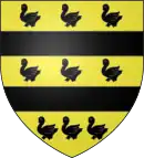 Blazon: D'or, à deux fasces de sable, accompagné de neuf merlettes du même (3, 3 et 3)