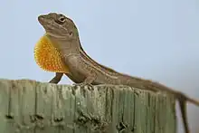 Male anoles have a retractable gular fold, a secondary sexual character, that is also employed to dissuade rivals.