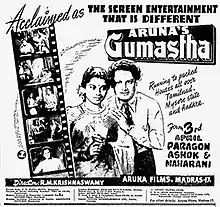 Gumastha (transl.Clerk) is a 1953 Tamil language film starring V. Nagayya, R. S. Manohar and Pandari Bai. The film was produced in Tamil and Telugu under the same title.[1][2]
