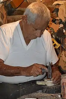Gumercindo España Olivares (13 January 1935 – 17 February 2018) was a Mexican artisan who specialized in traditional toys hand carved from wood.[1][2] He was from a family of toymakers, beginning with his grandfather, which started in clay but switched to wood. In addition to making traditional toys, the artisan also experimented with new designs, such as those related to the history of Guanajuato. His efforts have won him various awards.