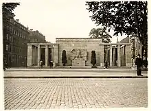 Stresemann died of a series of strokes on 3 October 1929 at the age of 51, just hours after convincing the Reichstag to accept the Young Plan.[36] His gravesite is situated in the Luisenstadt Cemetery at Südstern in Berlin Kreuzberg, and includes work by the German sculptor Hugo Lederer.