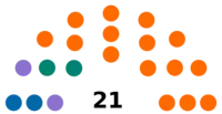 The Győr-Moson-Sopron County Council is the local legislative body of Győr-Moson-Sopron County in Hungary. After the elections in 2019, it consists 21 councillors, and is controlled by the Fidesz which has 15 councillors, versus 2 Jobbik, 2 Democratic Coalition, and 2 Momentum Movement councillors.[1][2]